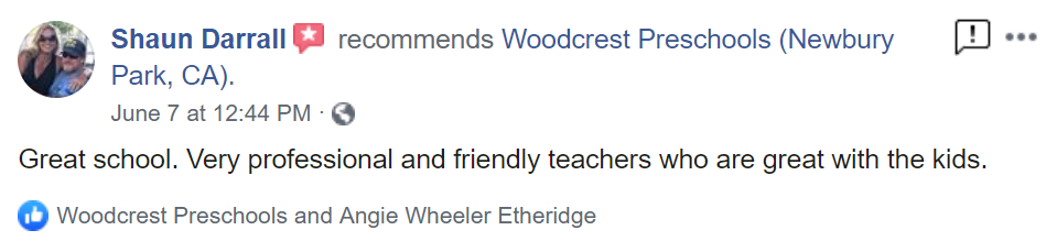 Thank you for your interest in Woodcrest Preschool in Newbury Park located at 107 Teardrop Court. Our Newbury Park center is set on a park like campus filled with smiling students, dedicated teachers and supportive parents. The school is conveniently located in Newbury Park off the 101 FWY . If you are looking for a loving and nurturing preschool program with strong academics, fun themes, lots of play, and 21 century skill building, Woodcrest Preschool is the right place for your family.